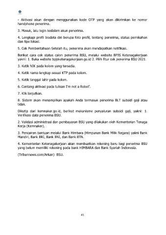 yakni: 1. Buka website bpjsketenagakerjaan.go.id 2. Pilih fitur cek penerima BSU 2021.
