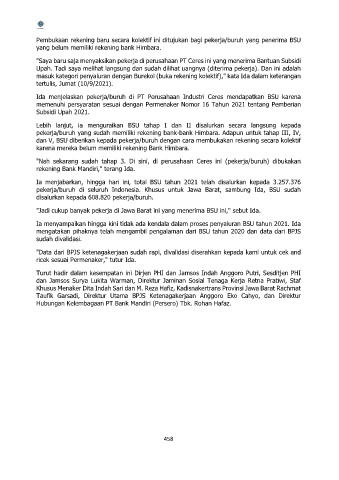 Ida menjelaskan pekerja/buruh di PT Perusahaan Industri Ceres mendapatkan BSU karena