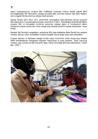 Ketenagakerjaan (BP Jamsostek) sebagai penyedia data penerima bantuan dan Bank Mandiri,