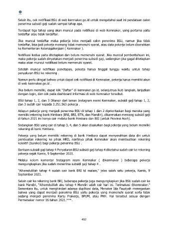 Selain itu, cek notifikasi BSU di web kemnaker.go.id untuk mengetahui saat ini pendataan calon