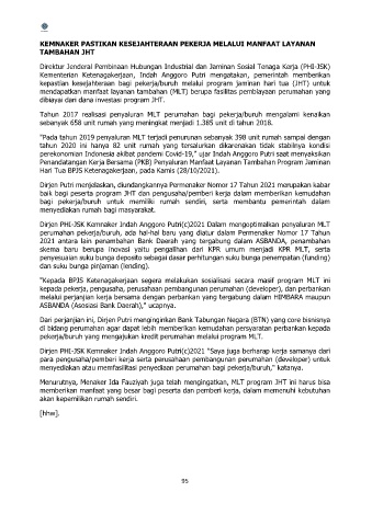 Menurutnya, Menaker Ida Fauziyah juga telah mengingatkan, MLT program JHT ini harus bisa