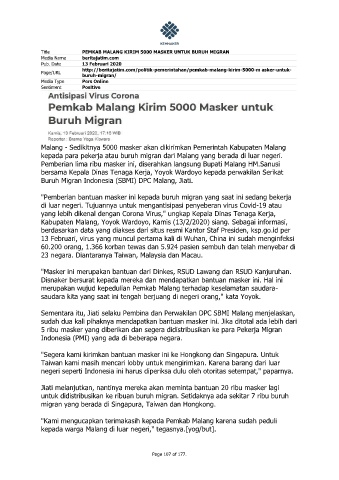 Title PEMKAB MALANG KIRIM 5000 MASKER UNTUK BURUH MIGRAN