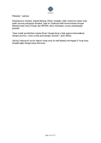 Diwawancara terpisah, Bupati Batang, Wihaji mengaku telah menerima kabar duka