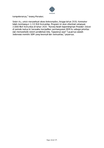 telah membangun 1.113 BLK Komunitas. Program ini akan ditambah sebanyak