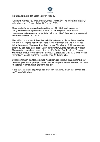Meski begitu, Iqbal mengatakan Kepolisian dan BIN tidak turut campur dan