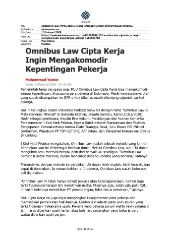 Page 142 - e-KLIPING KETENAGAKERJAAN 14 FEBRUARI 2020