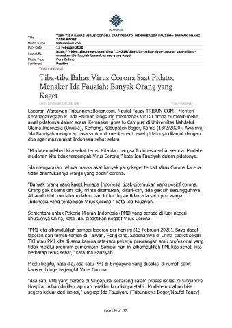 Title TIBA-TIBA BAHAS VIRUS CORONA SAAT PIDATO, MENAKER IDA FAUZIAH: BANYAK ORANG
