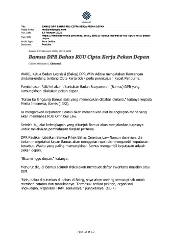 Title BAMUS DPR BAHAS RUU CIPTA KERJA PEKAN DEPAN