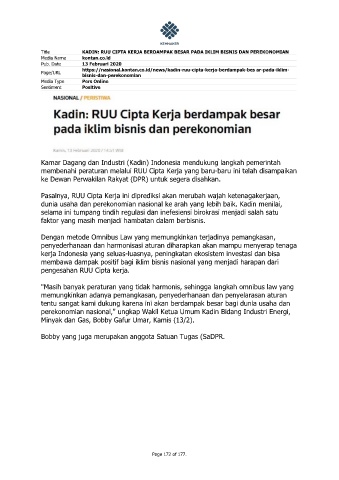 Title KADIN: RUU CIPTA KERJA BERDAMPAK BESAR PADA IKLIM BISNIS DAN PEREKONOMIAN