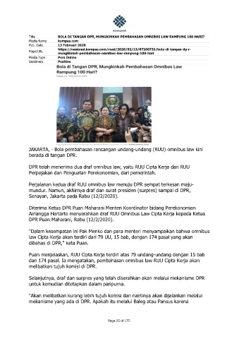 Title BOLA DI TANGAN DPR, MUNGKINKAH PEMBAHASAN OMNIBUS LAW RAMPUNG 100 HARI?