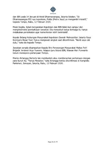 dan BIN pada 14 Januari di Hotel Dharmawangsa, Jakarta Selatan. "Di