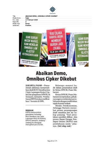 Title ABAIKAN DEMO, OMNIBUS CIPKER DIKEBUT Media Name Fajar Pub. Date 13 Februari 2020 Page/URL 2 Media Type Koran Sentiment Positive Page 59 of 177.