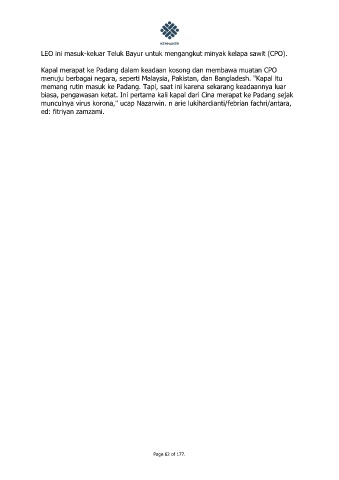 LEO ini masuk-keluar Teluk Bayur untuk mengangkut minyak kelapa sawit (CPO).