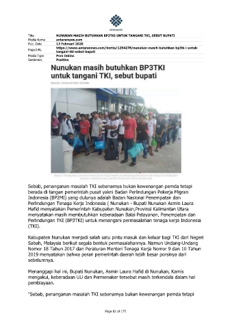 Title NUNUKAN MASIH BUTUHKAN BP3TKI UNTUK TANGANI TKI, SEBUT BUPATI