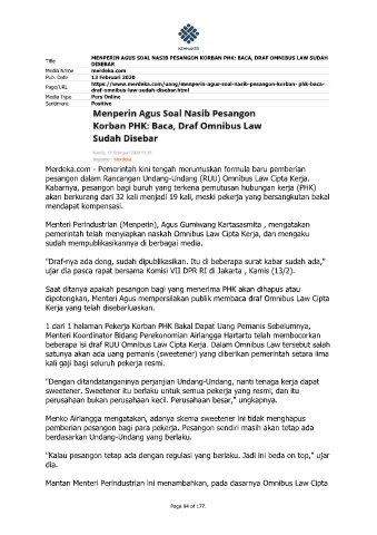 Title MENPERIN AGUS SOAL NASIB PESANGON KORBAN PHK: BACA, DRAF OMNIBUS LAW SUDAH