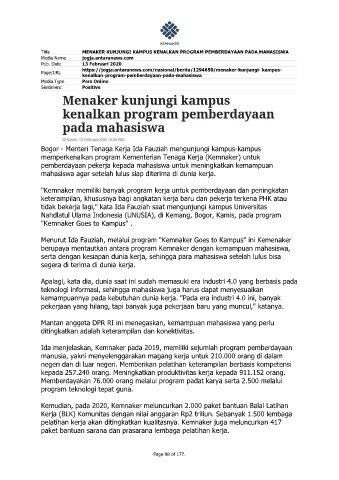Title MENAKER KUNJUNGI KAMPUS KENALKAN PROGRAM PEMBERDAYAAN PADA MAHASISWA