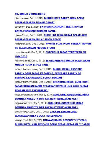 okezone.com, Dec 1, 2019: BURUH JAWA BARAT AKAN DEMO