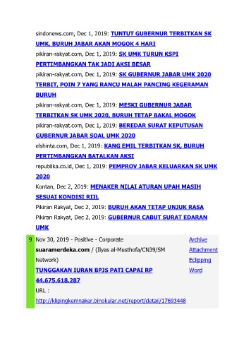pikiran-rakyat.com, Dec 1, 2019: SK UMK TURUN KSPI