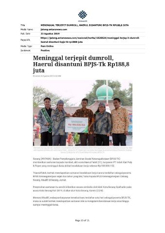 Title MENINGGAL TERJEPIT DUMROLL, HAERUL DISANTUNI BPJS-TK RP188,8 JUTA