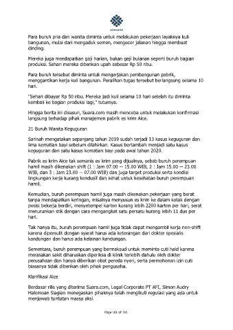 Kemudian, buruh perempuan hamil juga masih dikenakan pekerjaan yang berat