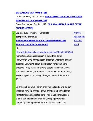 sindonews.com, Sep 11, 2019: BLK KOMUNITAS SIAP CETAK SDM
