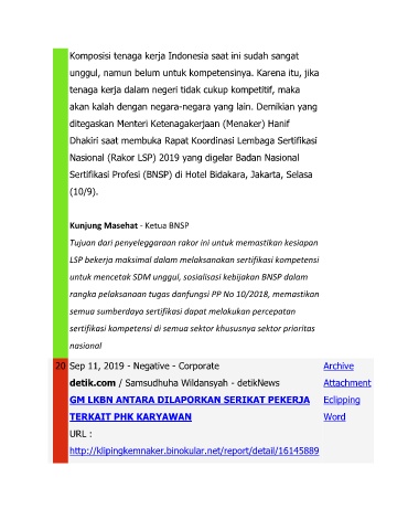 Nasional (Rakor LSP) 2019 yang digelar Badan Nasional