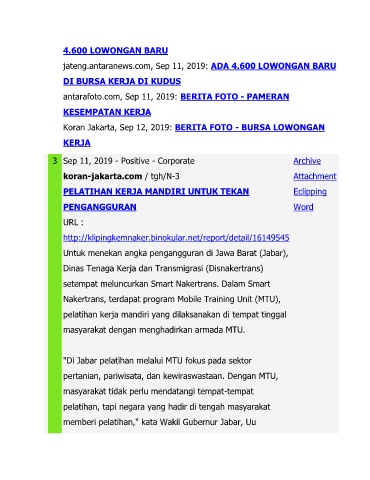 jateng.antaranews.com, Sep 11, 2019: ADA 4.600 LOWONGAN BARU