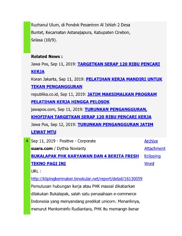jawapos.com, Sep 11, 2019: TURUNKAN PENGANGGURAN,