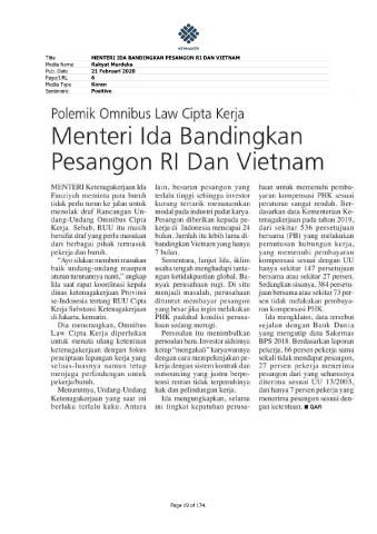 Title MENTERI IDA BANDINGKAN PESANGON RI DAN VIETNAM Media Name Rakyat Merdeka Pub. Date 21 Februari 2020 Page/URL 6 Media Type Koran Sentiment Positive Page 19 of 174.