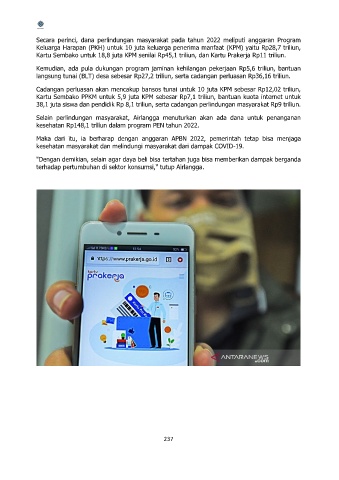 Secara perinci, dana perlindungan masyarakat pada tahun 2022 meliputi anggaran Program