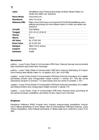negative - Louisa Tuhatu (Head of Communication PMO Kartu Prakerja) Gelombang 18 ini adalah