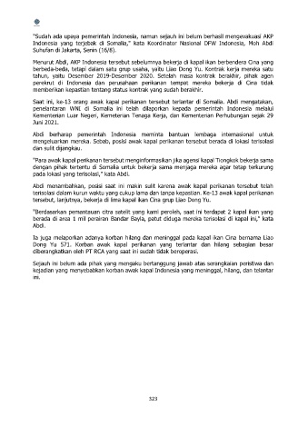 Menurut Abdi, AKP Indonesia tersebut sebelumnya bekerja di kapal ikan berbendera Cina yang