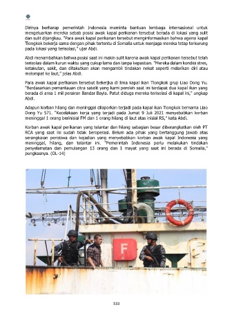 dan sulit dijangkau. "Para awak kapal perikanan tersebut menginformasikan bahwa agensi kapal