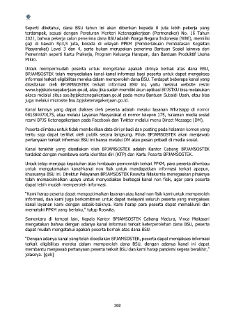 informasi terkait eligibilitas mereka dalam memperoleh dana BSU. Terdapat beberapa kanal yang