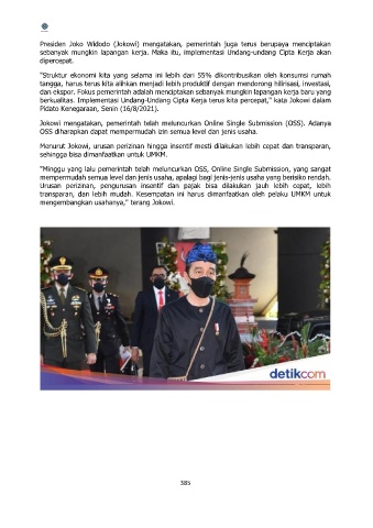 berkualitas. Implementasi Undang-Undang Cipta Kerja terus kita percepat," kata Jokowi dalam