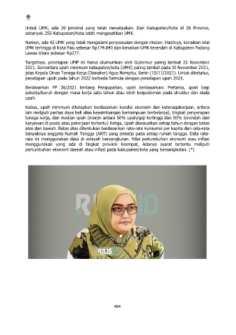 2021. Sementara upah minimum kabupaten/kota (UMK) paling lambat pada 30 November 2021,