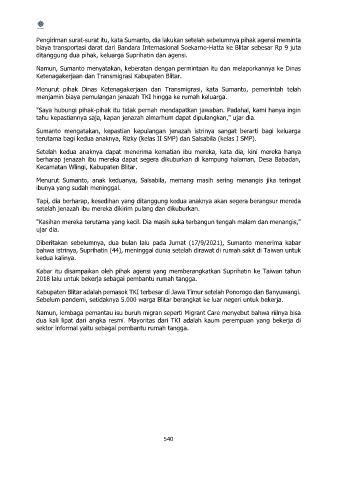 berharap jenazah ibu mereka dapat segera dikuburkan di kampung halaman, Desa Babadan,
