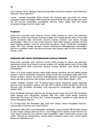 KENAIKAN UMP HARUS PERTIMBANGKAN KONDISI PANDEMI