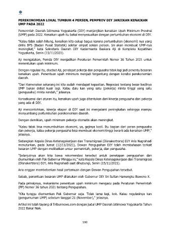(UMP) pada 2022. Kenaikan upah itu bakal menyesuaikan dengan pertumbuhan ekonomi di DIY.