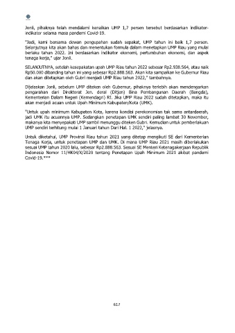 Tenaga Kerja, untuk penetapan UMP dan UMK. Di mana UMP Riau 2021 masih diberlakukan