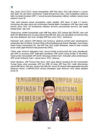 Tenaga Kerja, untuk penetapan UMP dan UMK. Di mana UMP Riau 2021 masih diberlakukan