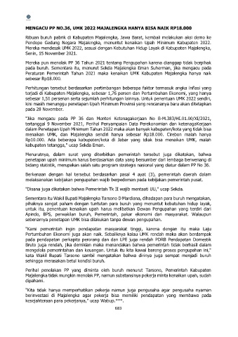 MENGACU PP NO.36, UMK 2022 MAJALENGKA HANYA BISA NAIK RP18.000
