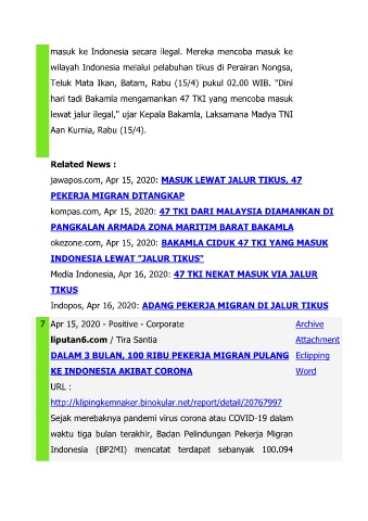 Media Indonesia, Apr 16, 2020: 47 TKI NEKAT MASUK VIA JALUR