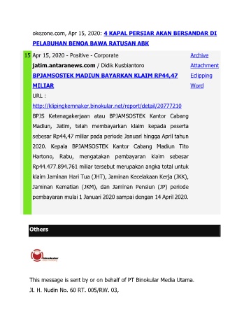 BPJAMSOSTEK MADIUN BAYARKAN KLAIM RP44,47 Eclipping