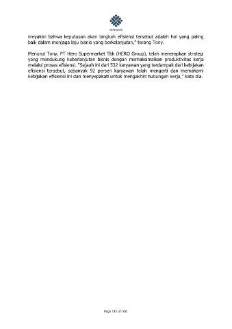 Menurut Tony, PT Hero Supermarket Tbk (HERO Group), telah menerapkan strategi