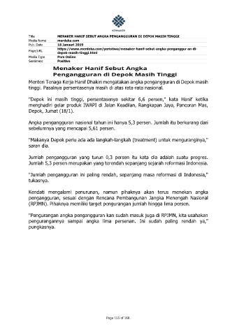 Title MENAKER HANIF SEBUT ANGKA PENGANGGURAN DI DEPOK MASIH TINGGI
