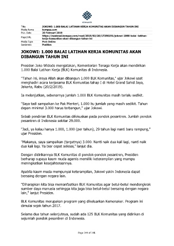 Title JOKOWI: 1.000 BALAI LATIHAN KERJA KOMUNITAS AKAN DIBANGUN TAHUN INI