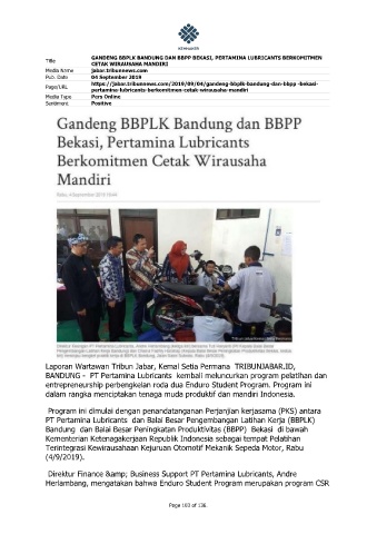 Title GANDENG BBPLK BANDUNG DAN BBPP BEKASI, PERTAMINA LUBRICANTS BERKOMITMEN