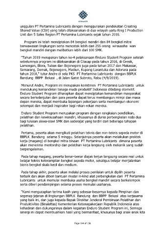 tahun 2018," tutur Andre di sela PKS PT Pertamina Lubricants dengan BBPLK