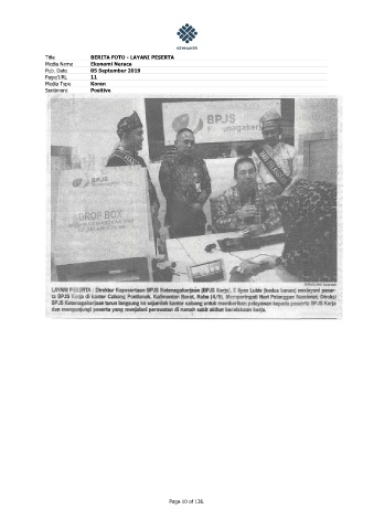 Title BERITA FOTO - LAYANI PESERTA Media Name Ekonomi Neraca Pub. Date 05 September 2019 Page/URL 11 Media Type Koran Sentiment Positive Page 10 of 136.